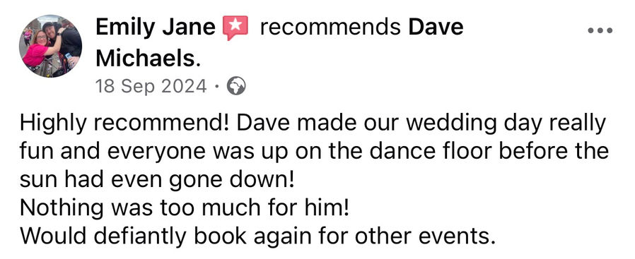 WITH OVER 16 YEARS EXPERIENCE ON THE NORTH WEST CLUB SCENE, AS WELL AS HAVING FACILITATED COUNTLESS WEDDINGS AND PRIVATE EVENTS ACROSS THIS TIME, I AM EQUIPPED WITH THE SKILLS, KNOWLEGDE & CLUB STANDARD EQUIPMENT TO GIVE YOUR SPECIAL EVENT THE ENERGY IT DESERVES.